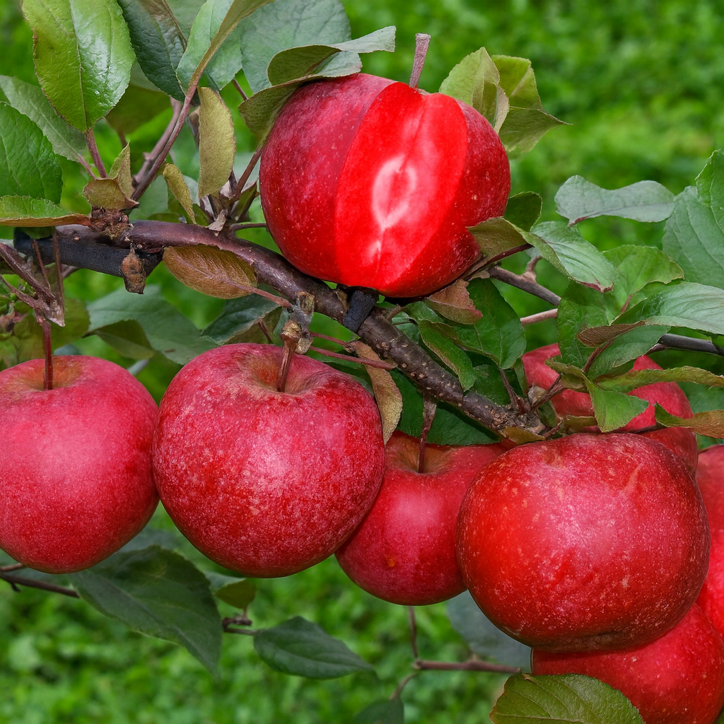 Це яблуко не схоже на жодне інше. Усередині — соковите рожеве серце, яке виглядає так, ніби його створила сама природа для натхнення. Кожен укус — вибух солодкого смаку з легкою ягідною ноткою, що залишає відчуття свіжості й радості.